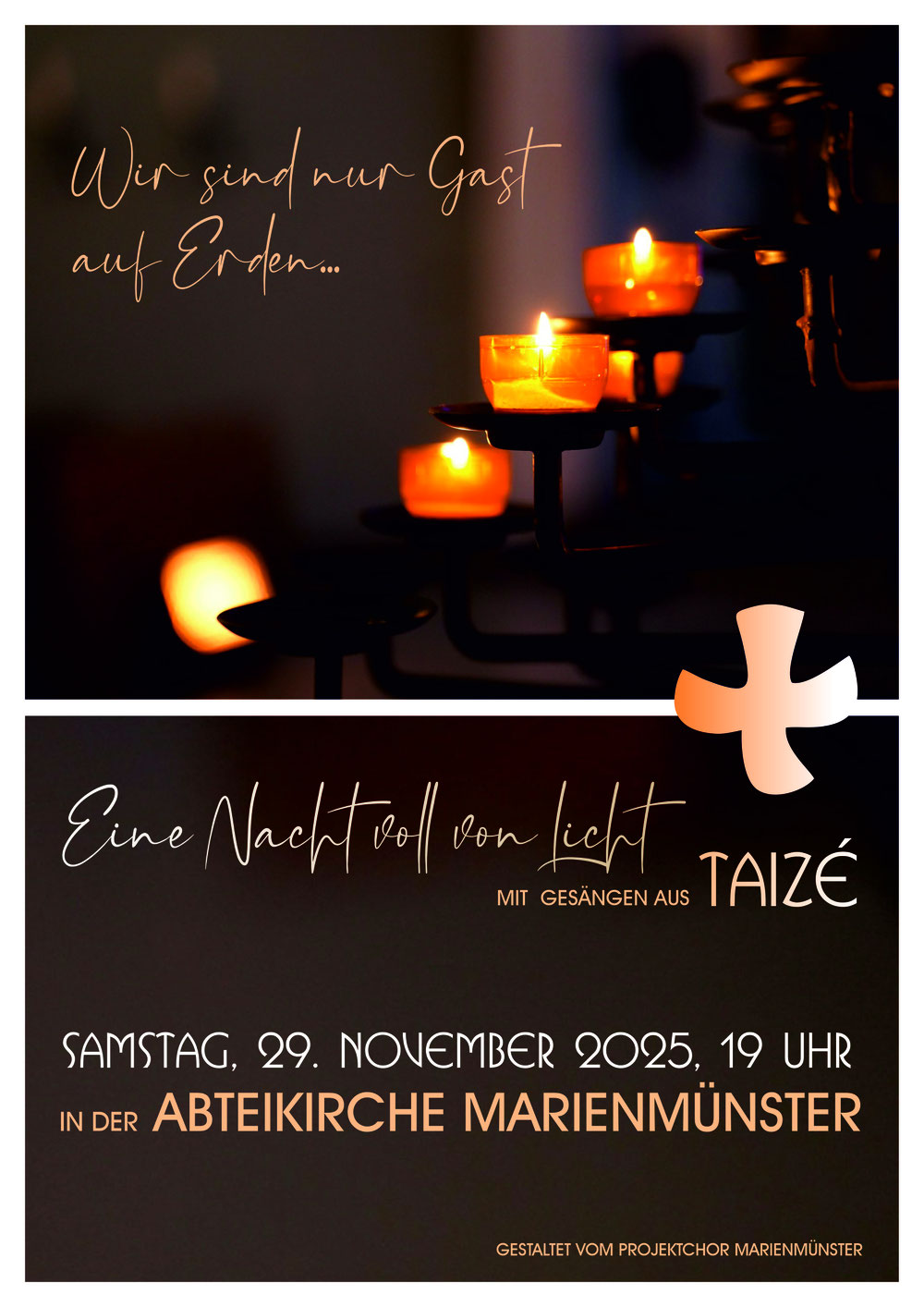 Im Anschluss sind alle Gottesdienstteilnehmerinnen und -teilnehmer zu einem Empfang im Pfarrsaal der Abtei herzlich eingeladen, bei dem sich die Gelegenheit bieten wird, miteinander ins Gespräch zu kommen.