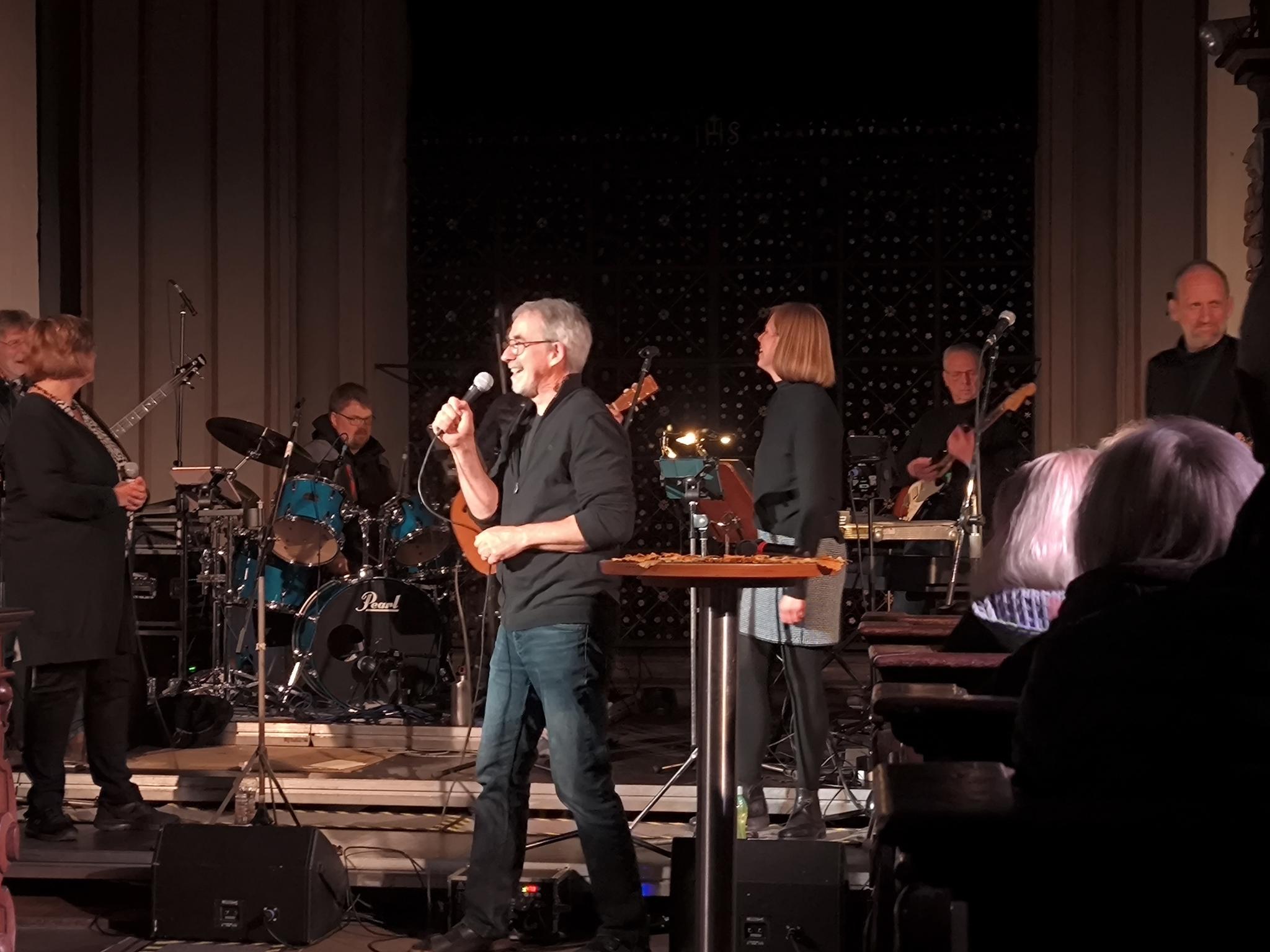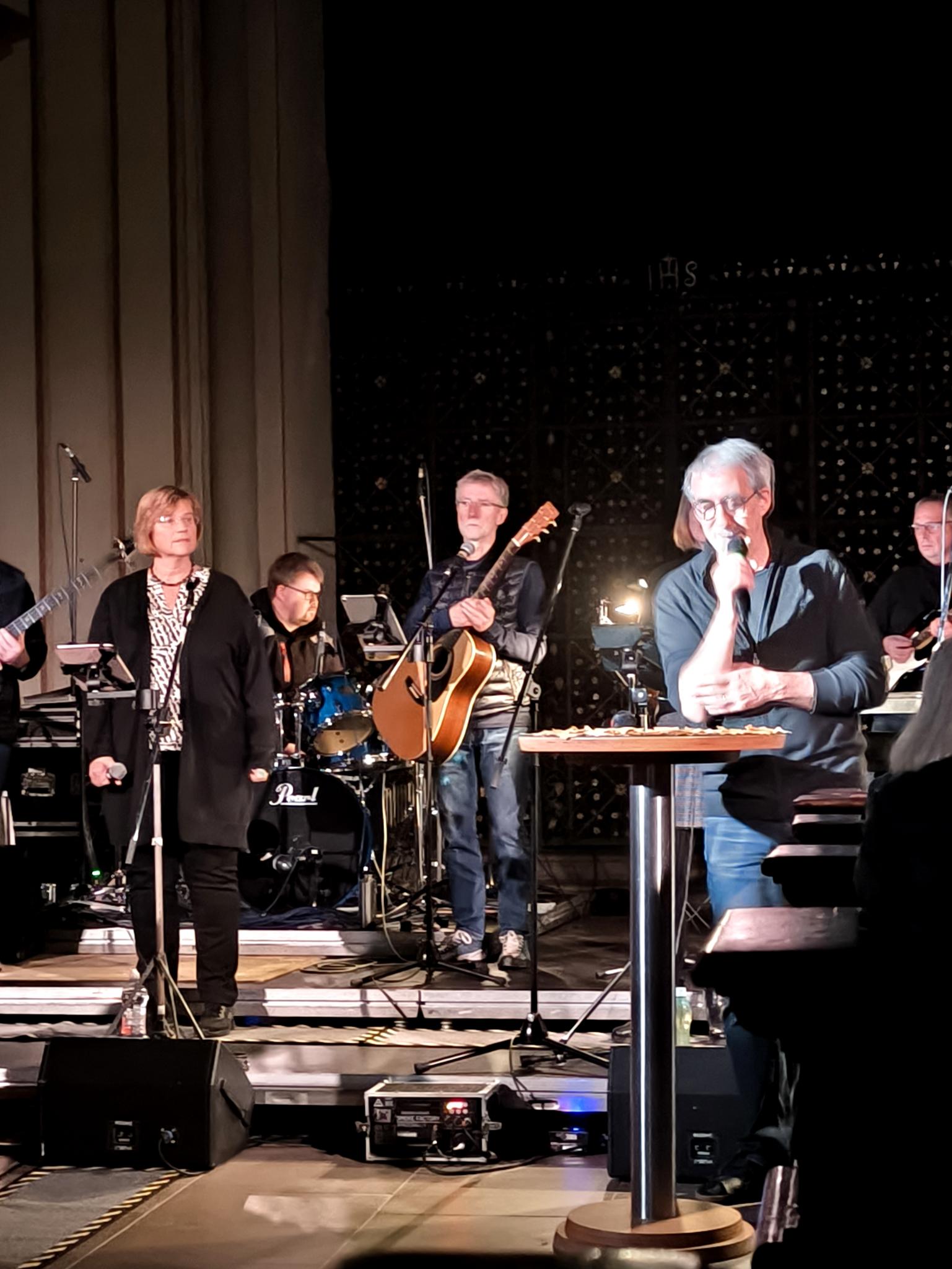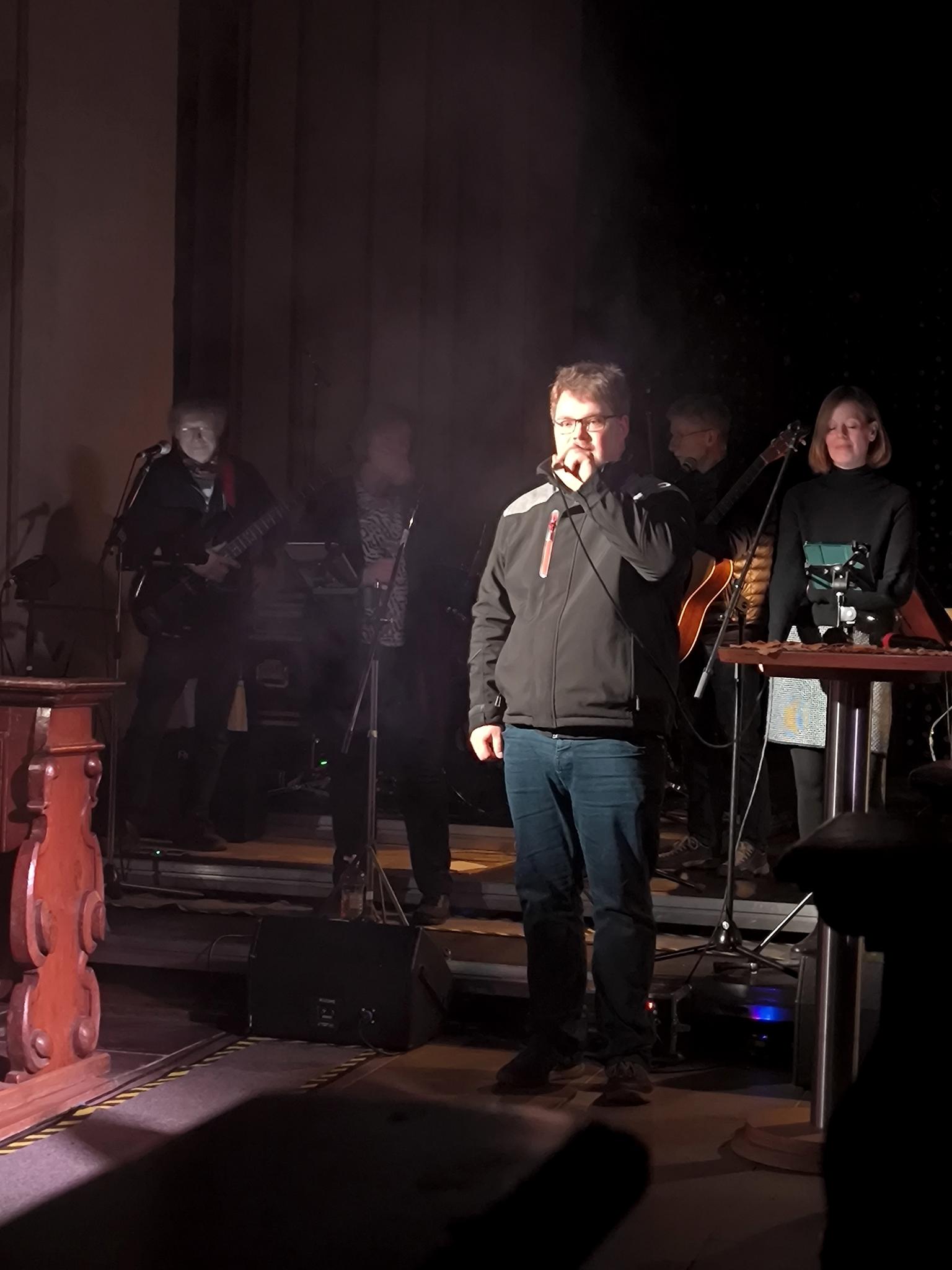dem Projektchor moderne geistliche Lieder aus seinem eigenen Repertoire einübte – darunter bekannte Werke wie „Ein Funke aus Stein geschlagen“ sowie Auszüge aus seinen selbst