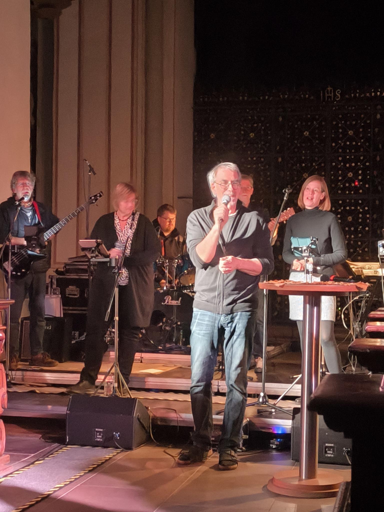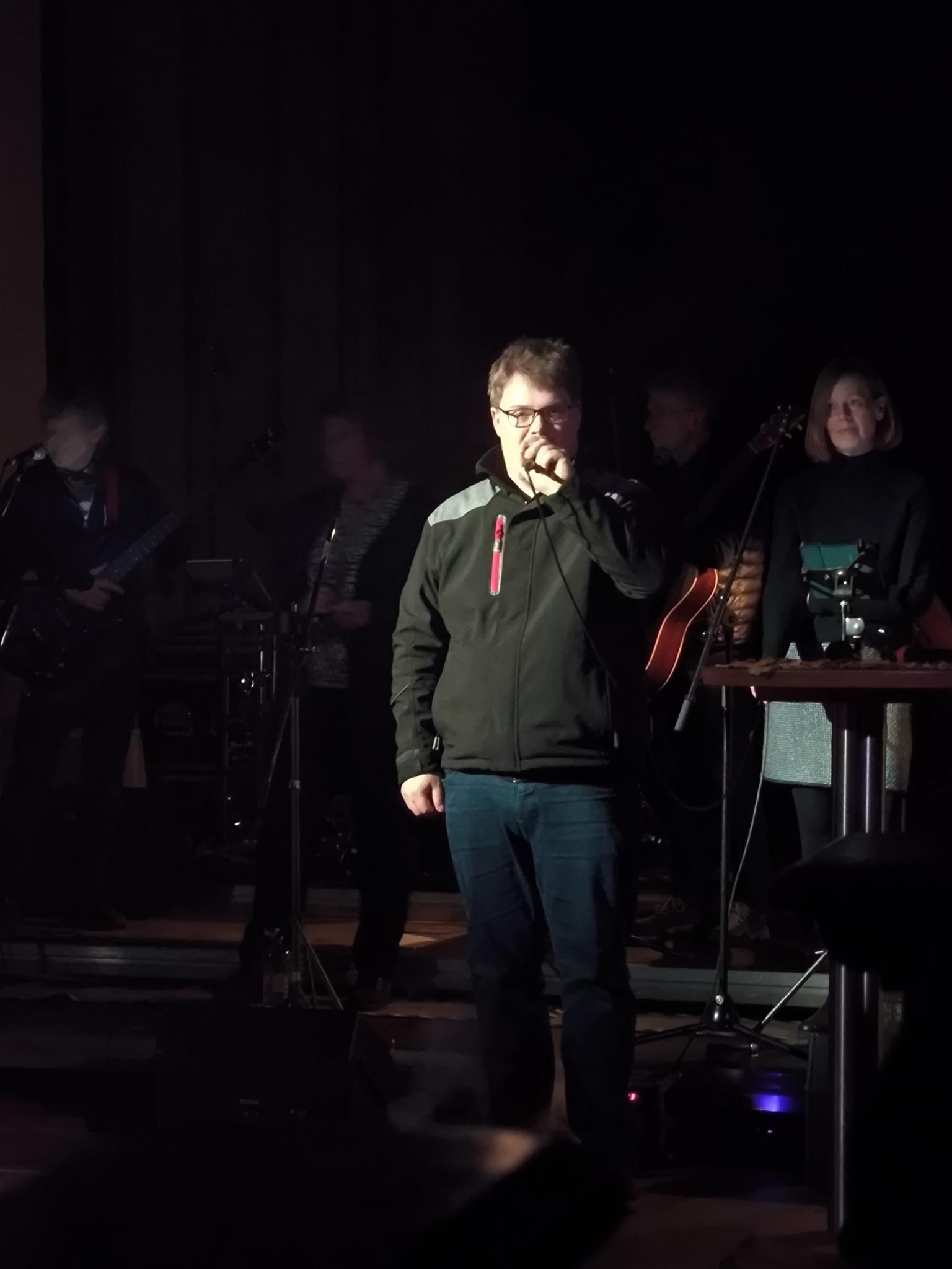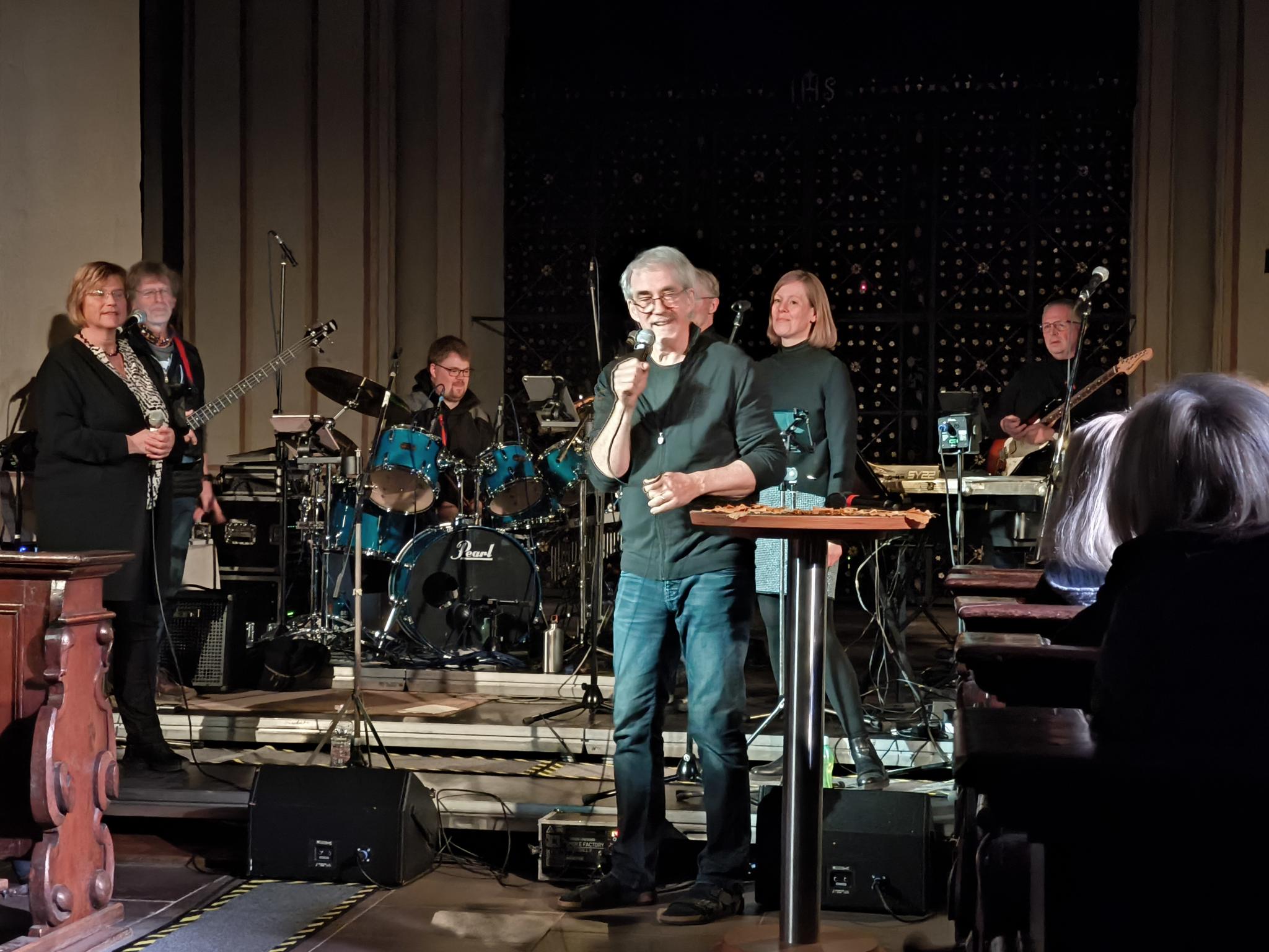dem Projektchor moderne geistliche Lieder aus seinem eigenen Repertoire einübte – darunter bekannte Werke wie „Ein Funke aus Stein geschlagen“ sowie Auszüge aus seinen selbst