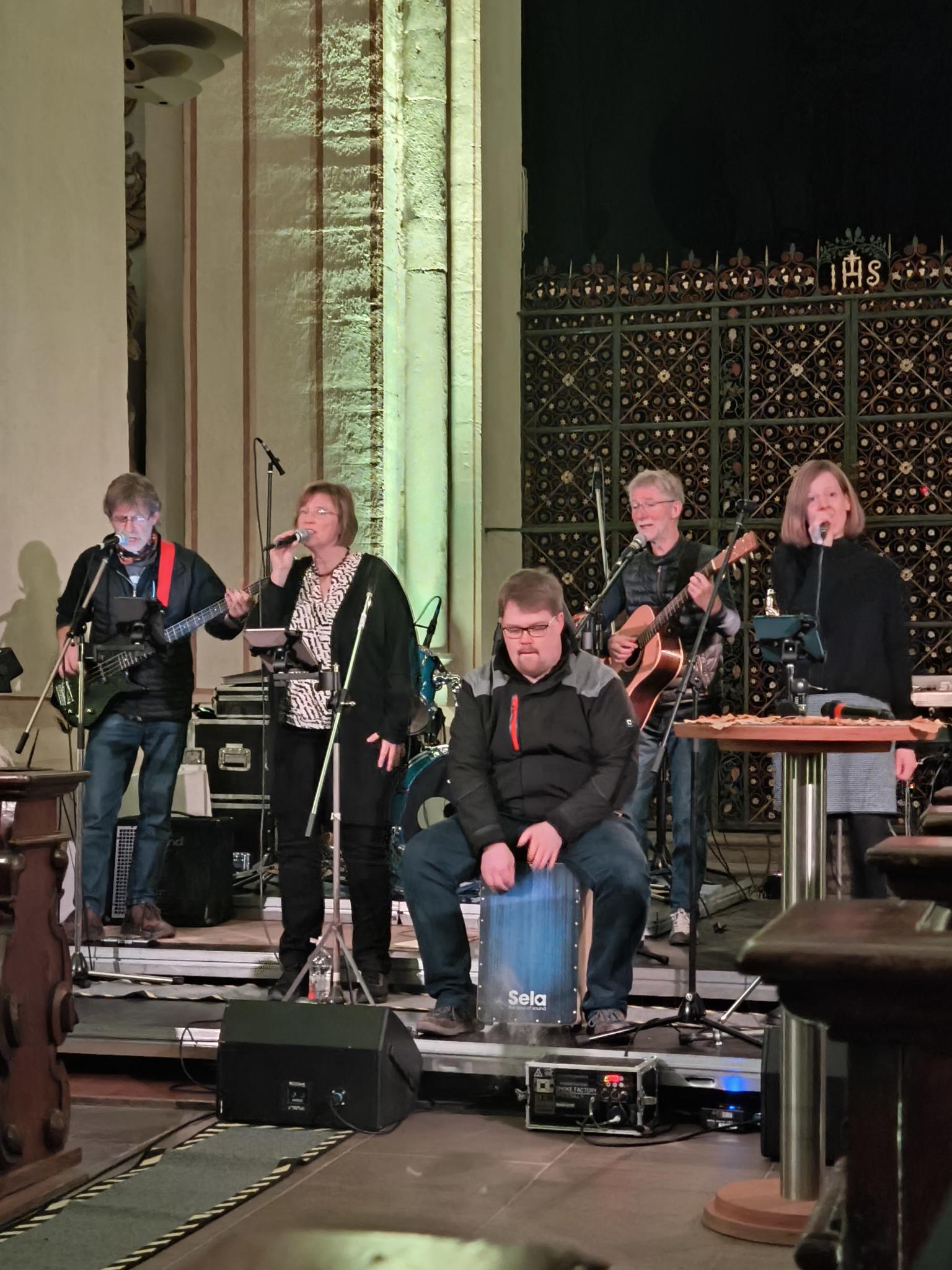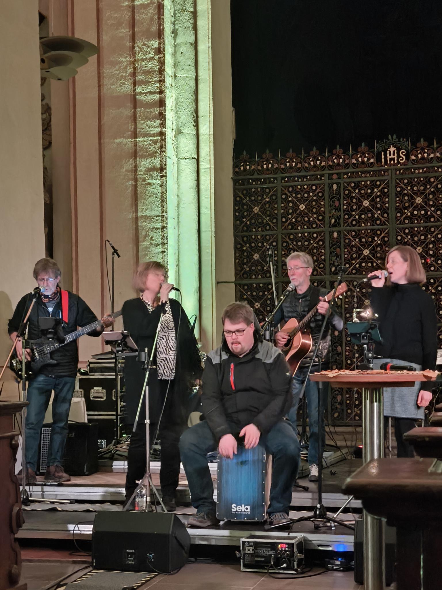 Die Lieder und Worte der Gruppe Gegenwind erinnerten die Anwesenden daran, dass auch in dunklen Zeiten Hoffnung keimen kann und dass jeder Einzelne mit seinem Handeln einen Beitrag zur Veränderung leisten kann. Die „Zeitenwende“, die das Thema des Abends prägte, wurde nicht nur als ein persönlicher Übergang in das neue Jahr verstanden, sondern auch als ein symbolischer Moment, um über die politische und gesellschaftliche Wende nachzudenken, die nötig ist, um die Herausforderungen der Gegenwart zu bewältigen. Der Abend endete mit der Hoffnung, dass wir gemeinsam die nötige Stärke finden, um auch in turbulenten Zeiten Frieden und Segen in der Welt zu verbreiten.